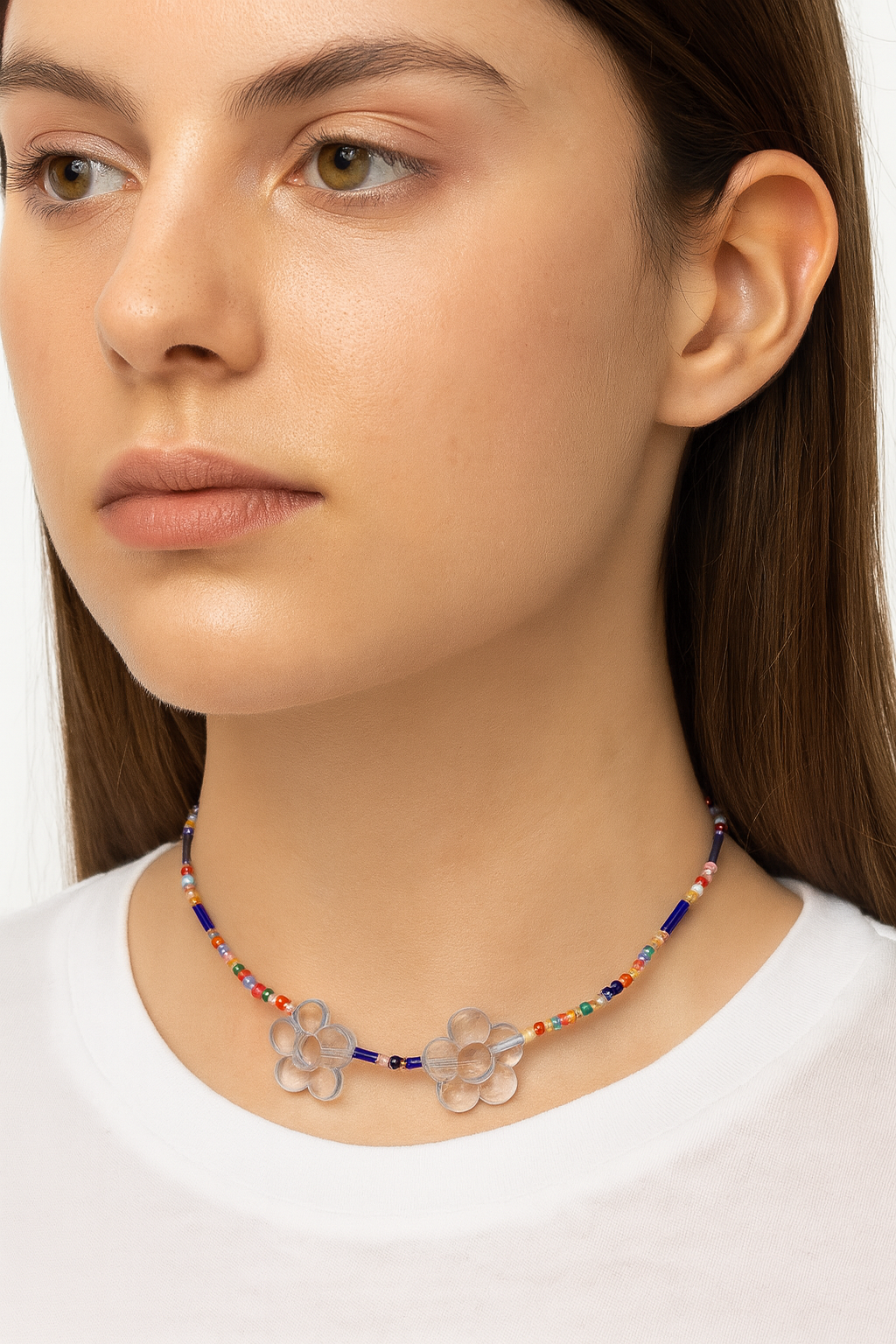 The Cielo necklace, crafted in France from deadstock beads, offers a unique accessory with a commitment to sustainability.