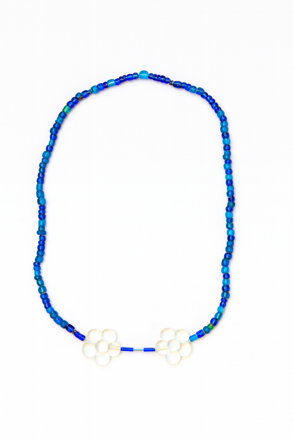 The Oceano necklace, crafted in France from deadstock beads, offers a unique accessory with a commitment to sustainability.
